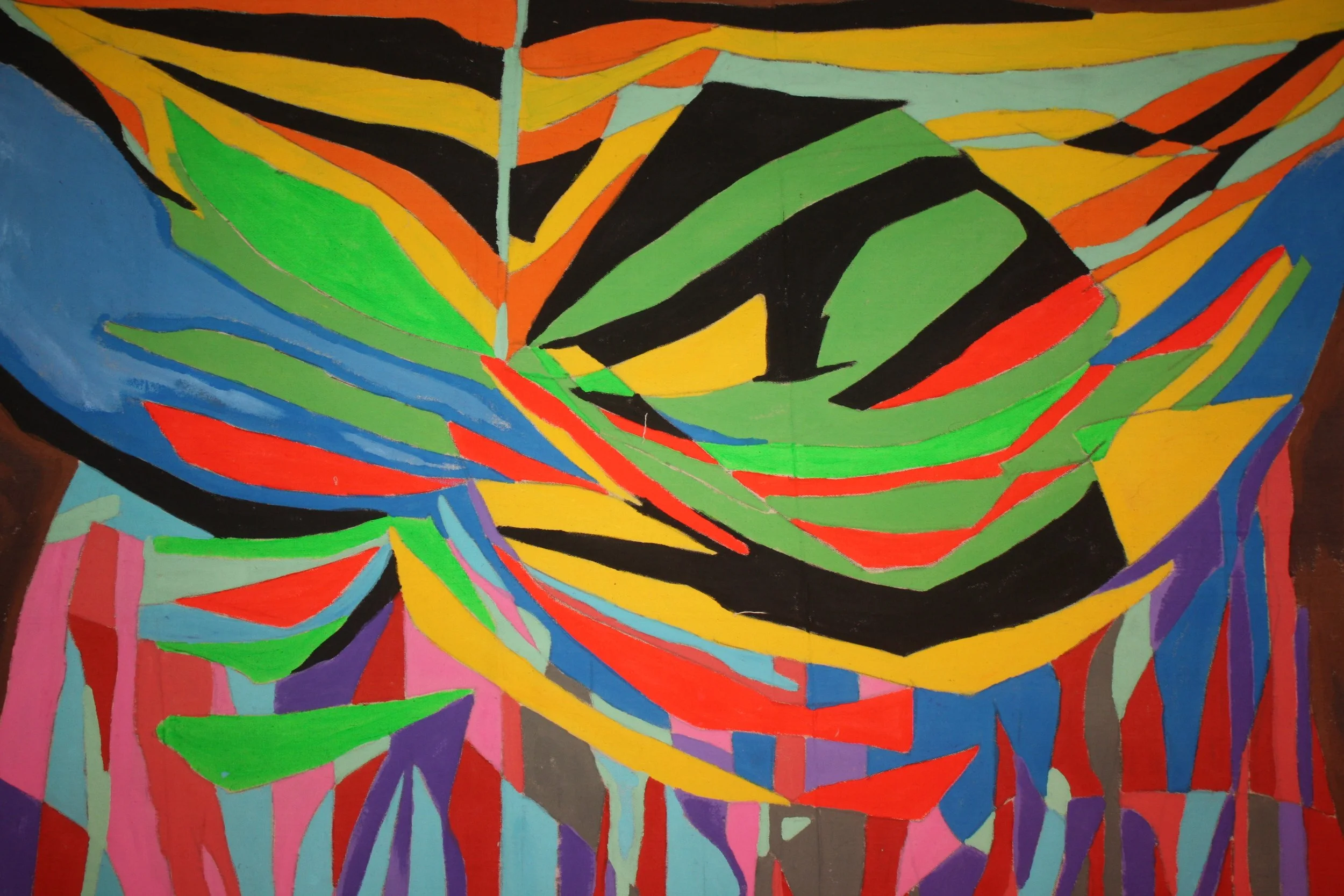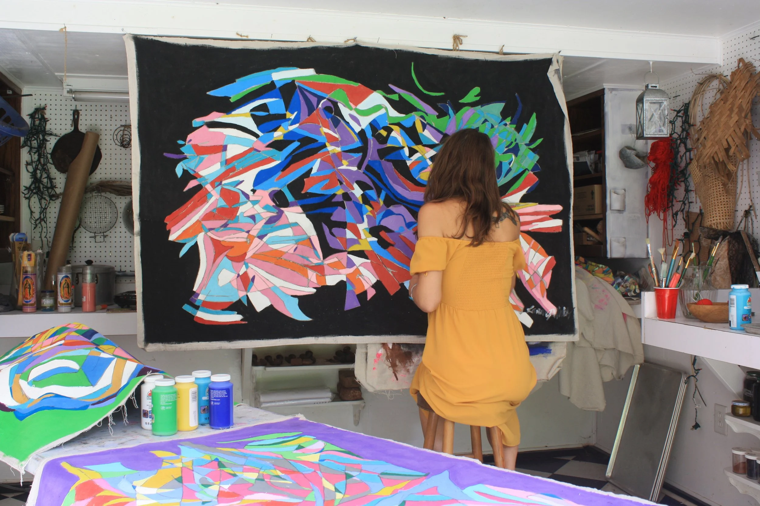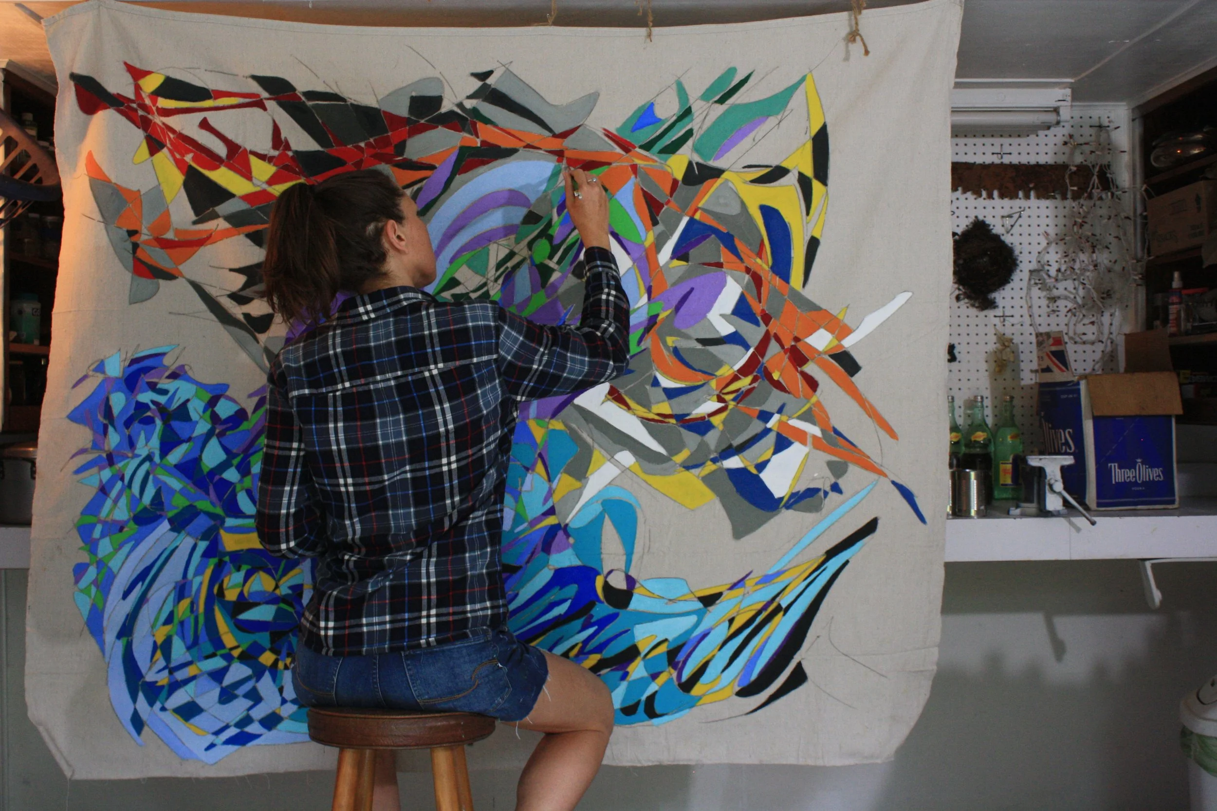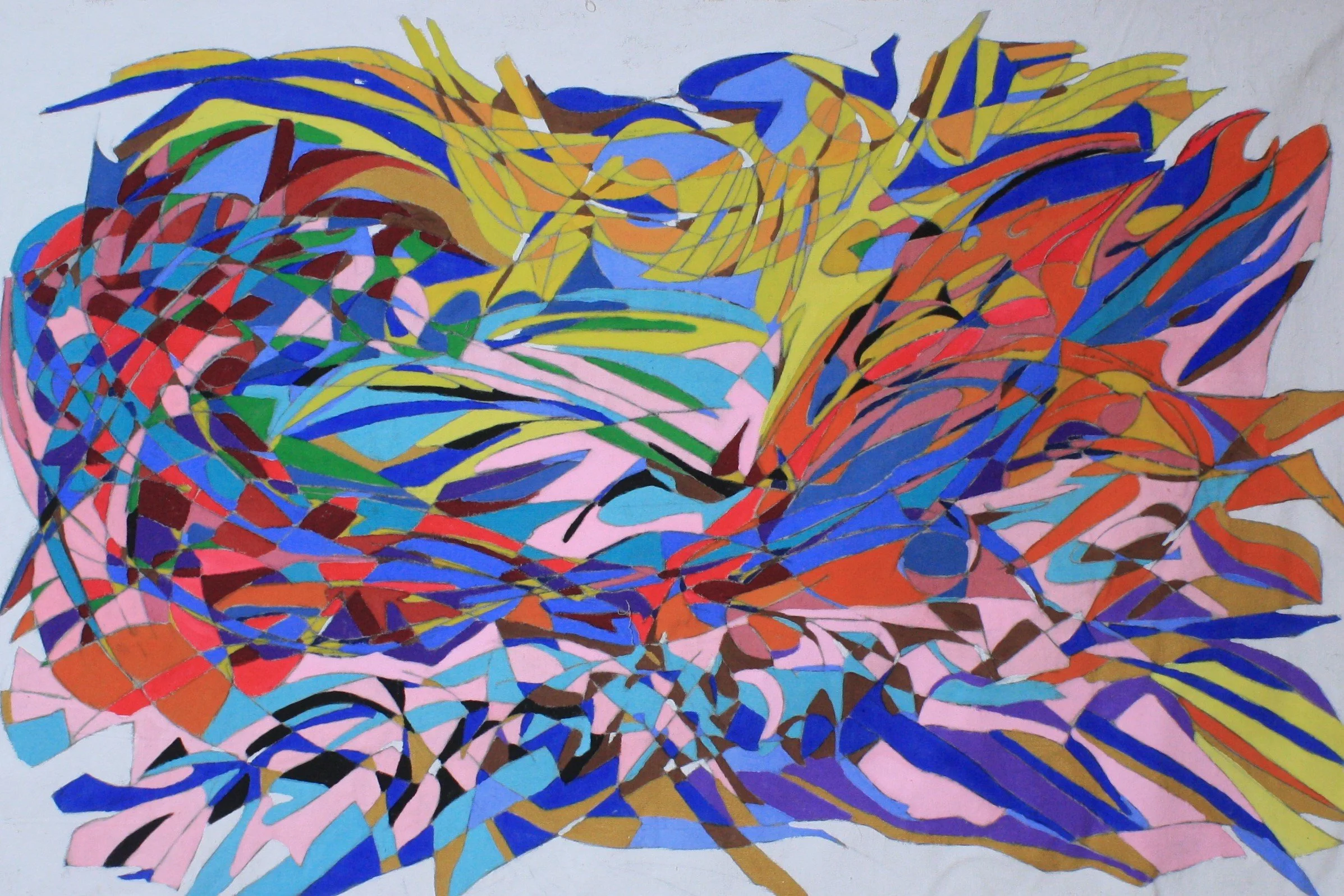 My series of large abstract acrylic paintings on canvas drop cloths.